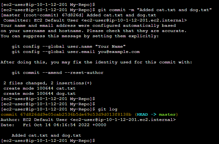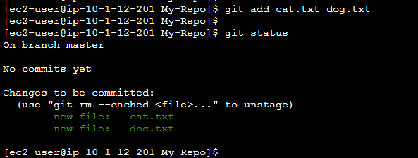 git commit -m "Added cat.txt and dog.txt"