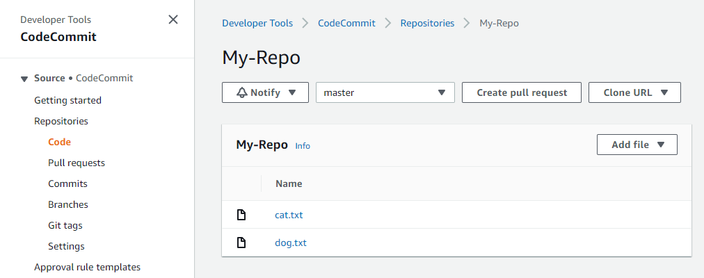 https://git-codecommit.us-east-1.amazonaws.com/v1/repos/My-Repo