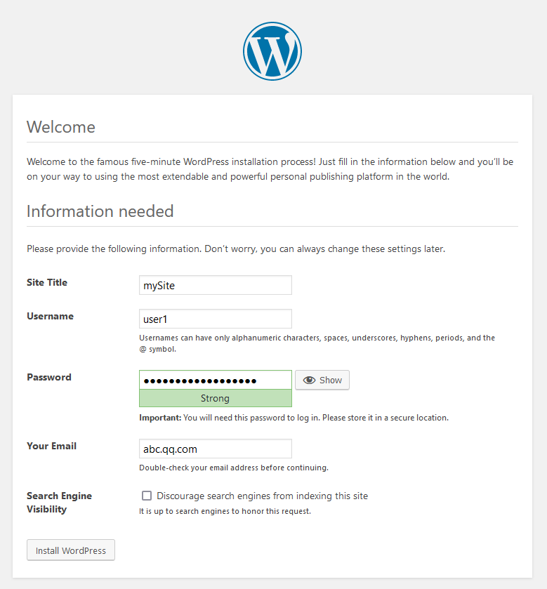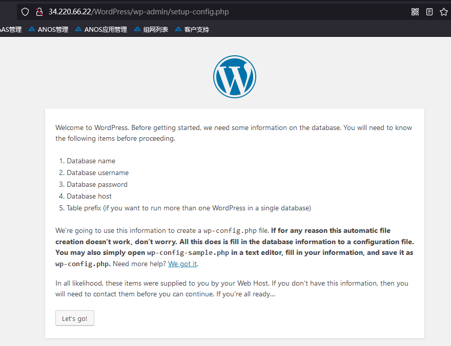 此时访问链接 http://34.220.66.22/WordPress/ 可见WordPress页面