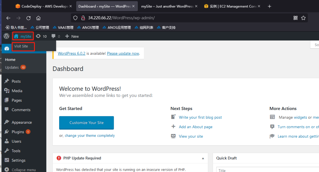在此任务中,我们将修改 WordPress 站点,然后使用 CodeDeploy 对其进行重新部署。