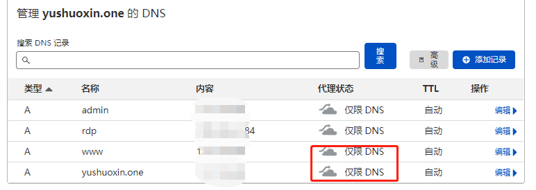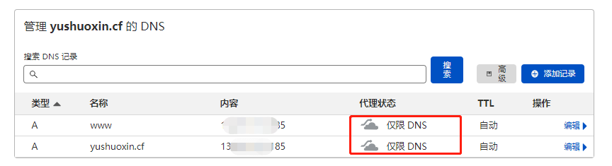 再把网站DNS解析,从“仅限DNS”改成“已代理”。