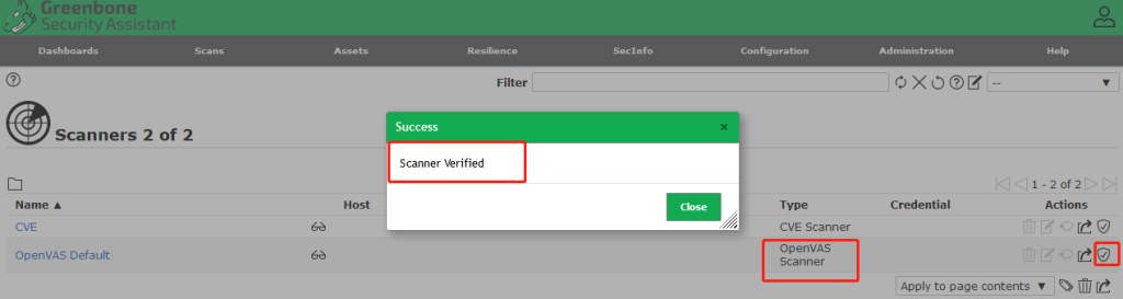 但是点击下图OpenVAS的“Verify Scanner”,