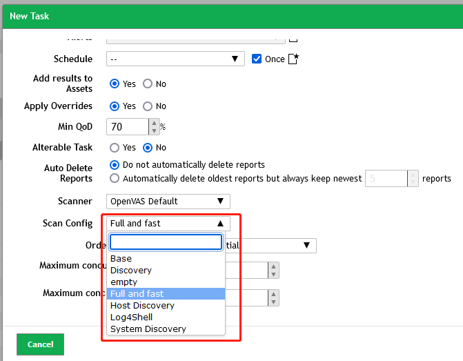 新建Scan task的时候,有一个选项是Scan Config,如下图