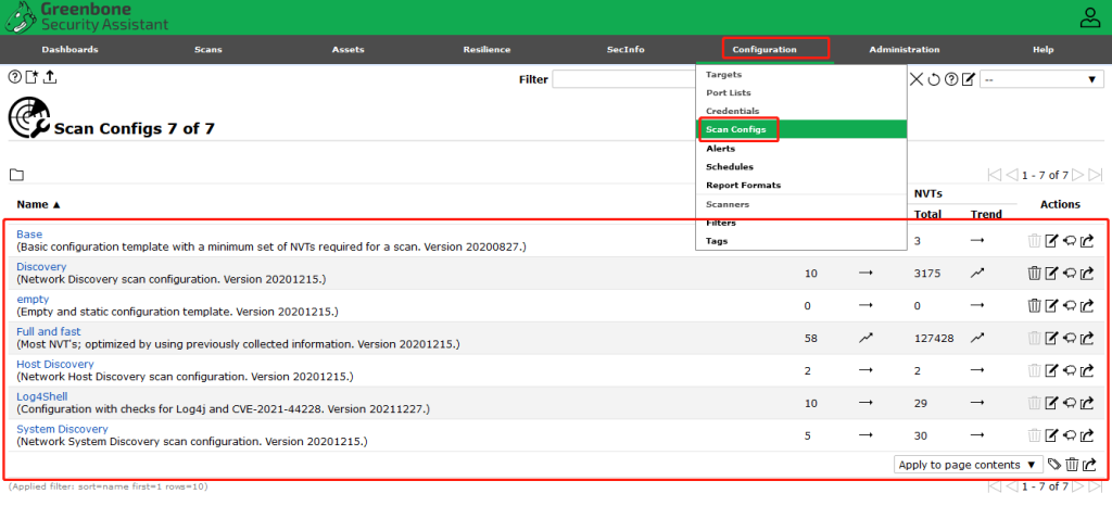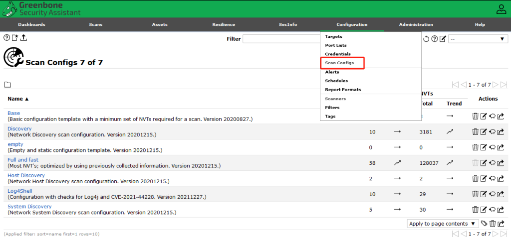 注意:刚启动服务后,Scan Configs中可能是空白的,此时无法进行扫描。需要等几分钟后,Scan Configs中才会有内容,如下图,然后就可以开始扫描了。