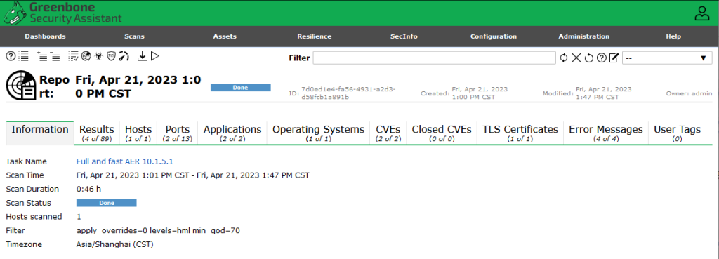 好了,到此为止,openVAS的安装和初步使用,就完成了。