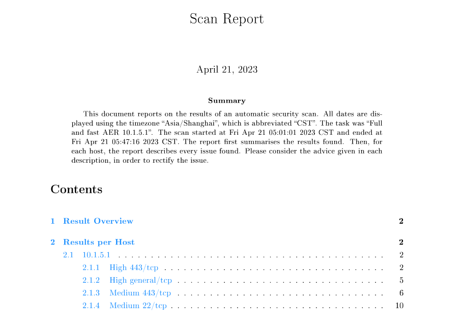 当status变为Done表明扫描结束,可以点击Last Report下的时间链接打开报告