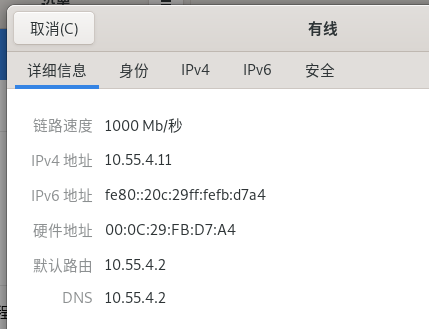 最后点击“确定”关闭窗口,此时去虚机2上可以看到10.55.4.11已经DHCP自动分配给它了。