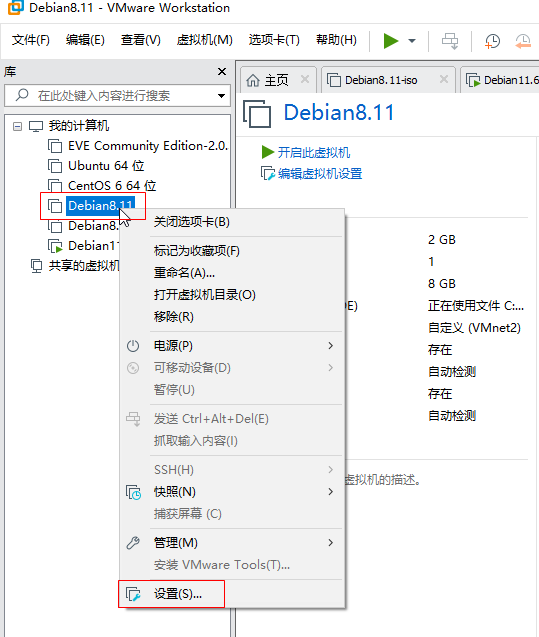 选择要指定IP的虚机,点击设置,进行网卡设置。