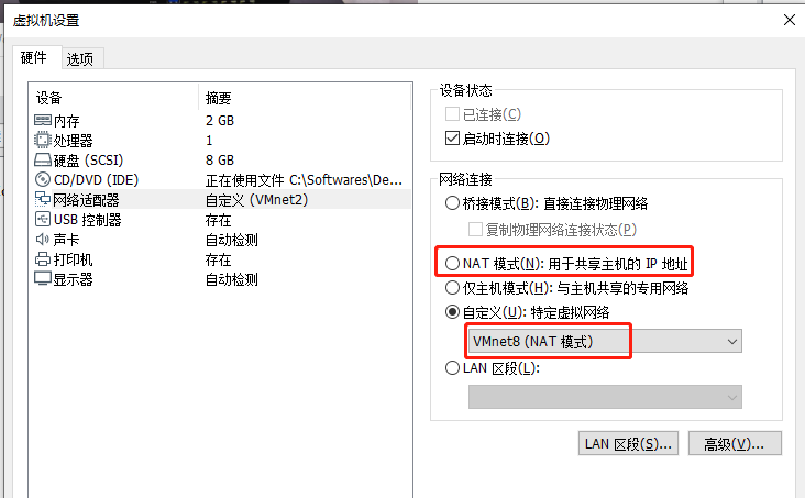 因为我虚机2是启动的状态下进行的上述配置,而且虚机2的网卡也是NAT模式,所以这里DHCP的配置会把第一个IP分配给正在运营的虚机2.