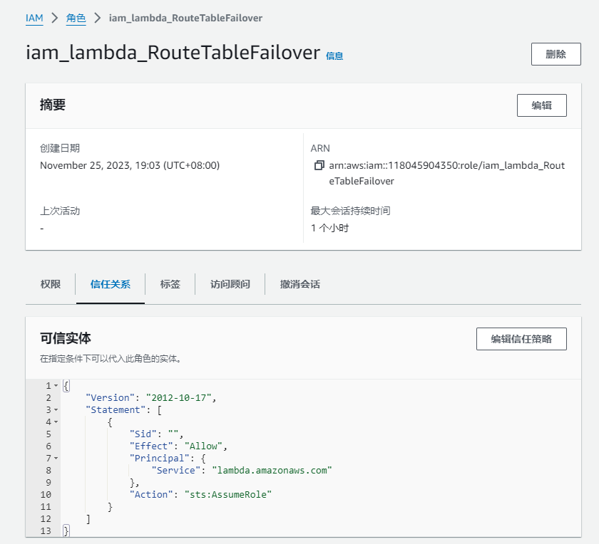 #创建名为"iam_lambda_RouteTableFailover"的IAM执行角色,并创建信任关系