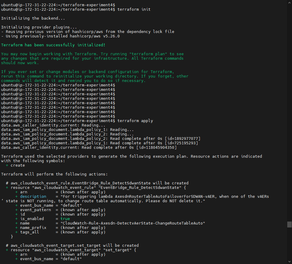 这里RouteTableFailover.zip是把包含了路由倒换python代码的RouteTableFailover.py压缩为zip文件,并上传至当前terraform运行服务器的terraform-experiment4文件夹下。
