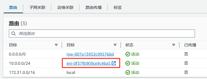我们在该VPC默认路由表里手动创建一条静态路由: